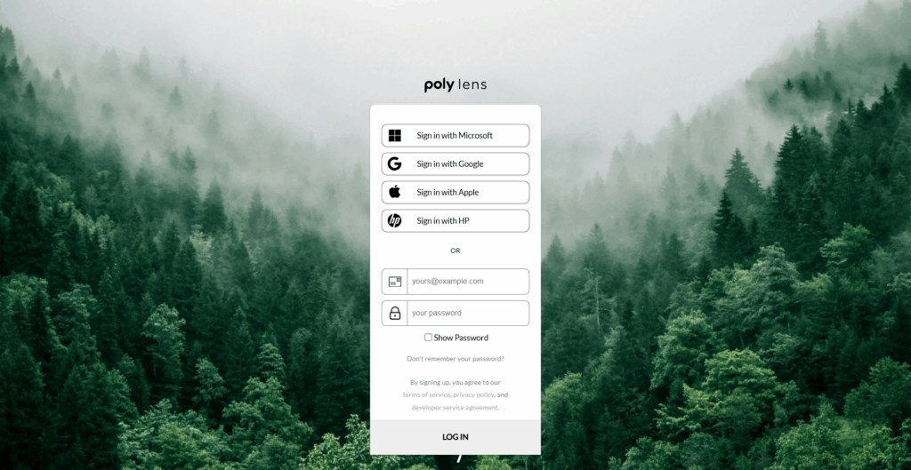 Zugriff und Anmeldung erfolgen wie gewohnt über lens.poly.com – keine separate Domain oder andere Login-Prozesse notwendig.