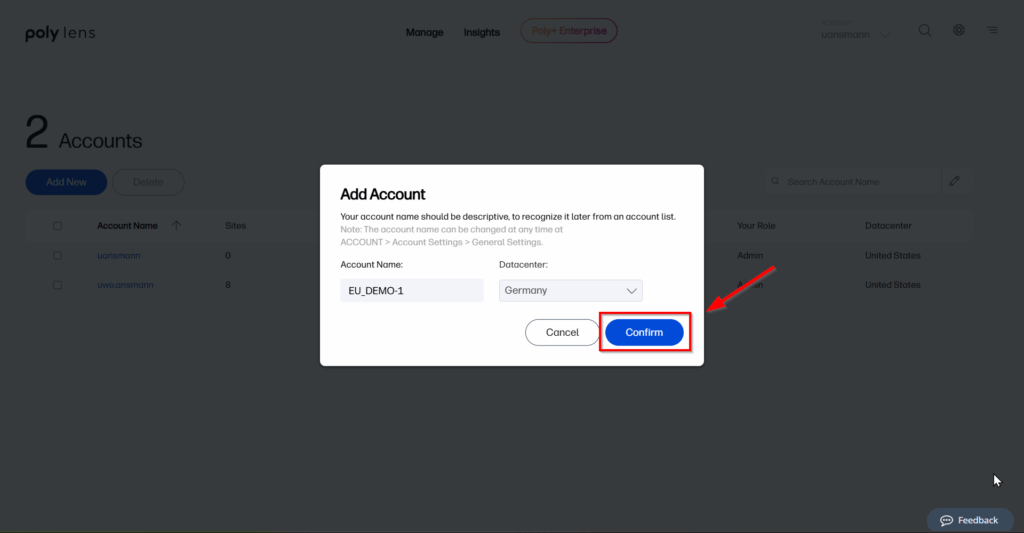 - Setup-Anleitung: Poly Lens Help – Datacenter