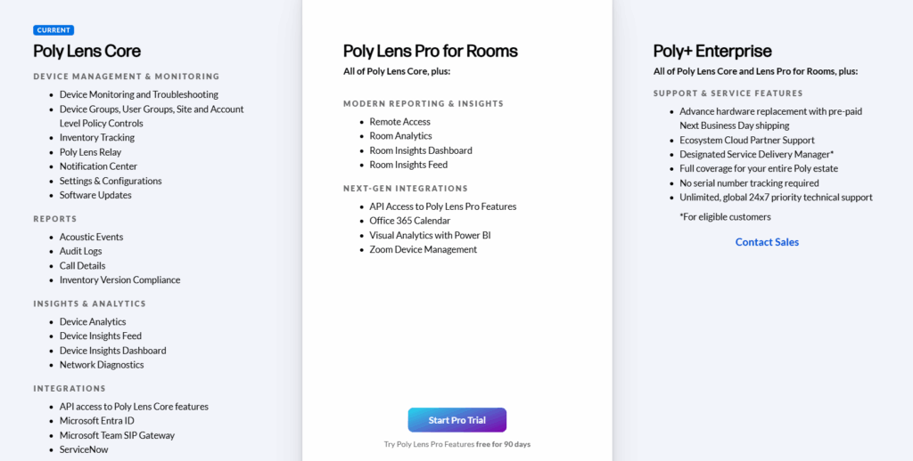 - Kompletter Funktionsumfang der Poly Lens App & Cloud-Services
