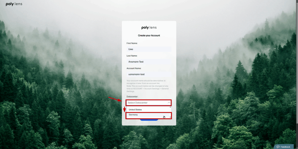 Hinweis: Die Auswahl der Region erfolgt einmalig bei der Kontoerstellung. Danach bleiben alle Daten ausschließlich im europäischen Datacenter.