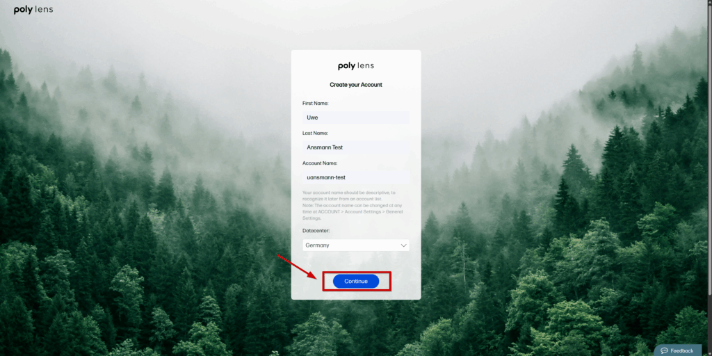 - Rufe lens.poly.com auf und melde dich über deinen SSO-Anbieter an, um ein neues Konto zu erstellen.